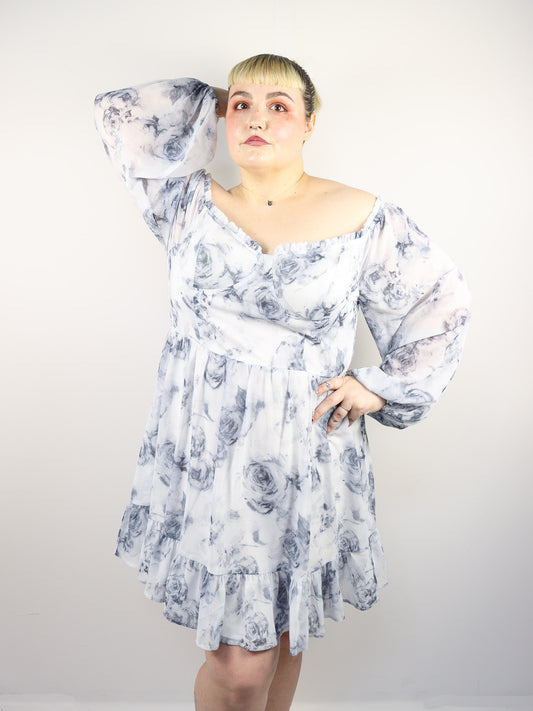 White and Blue Floral Babydoll Dress