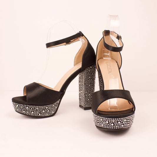 DELICACY YULA-11 BLACK SATIN HIGH HEELS