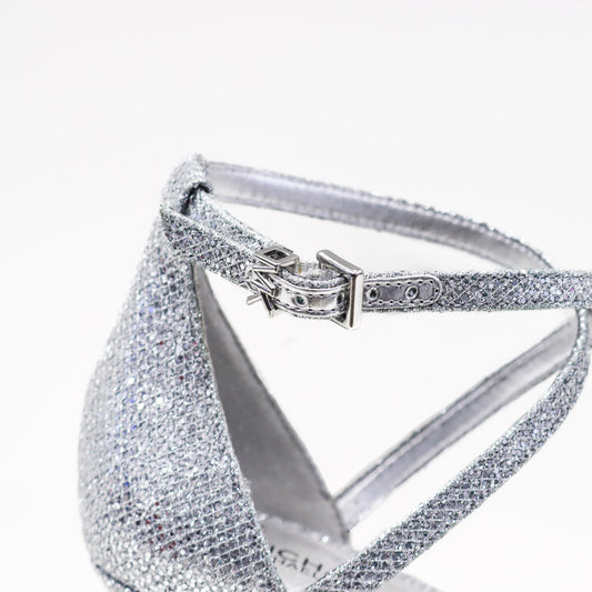 Qupid Kaylee109 Braided Rhinestone Heels - Black/Silver