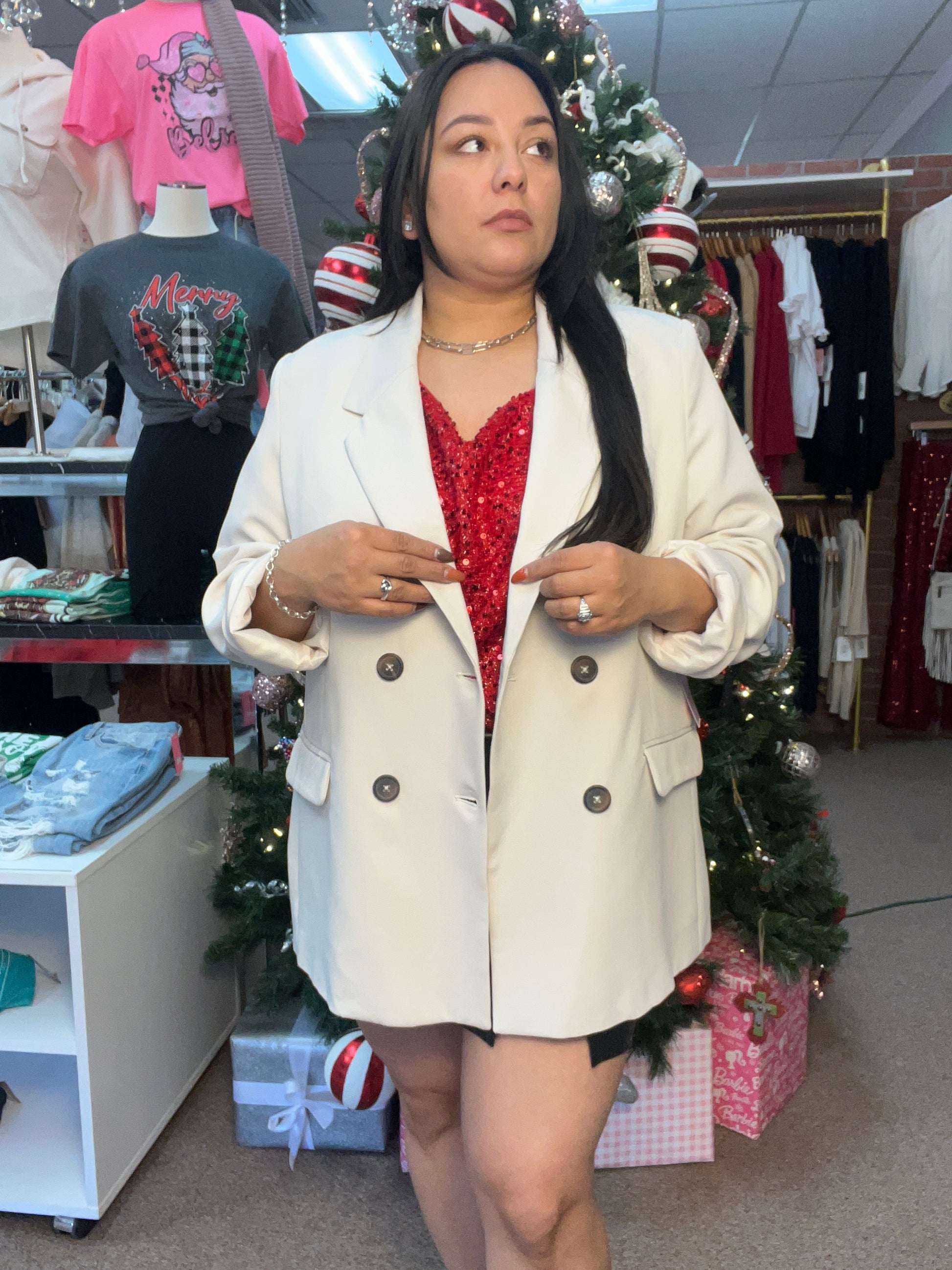 This oversized beige cotton blazer combines contemporary silhouette with timeless sophistication. The relaxed fit creates an effortlessly chic aesthetic while maintaining a polished appearance, perfect for layering or wearing as a statement piece. Front button closure allows for easy styling versatility—wear it open for a flowing look or buttoned for structure. The neutral beige hue complements any wardrobe, transitioning seamlessly from boardroom to weekend wear. An investment piece that delivers both comfort and refined elegance.