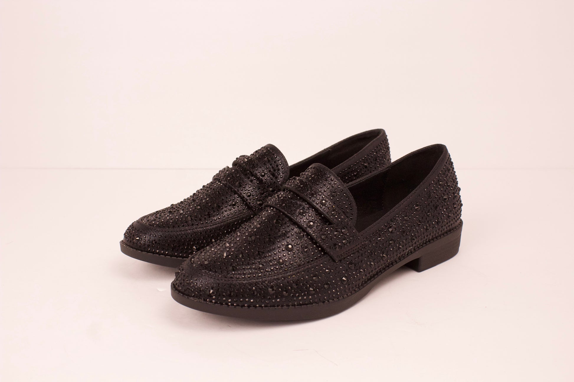 These BLACK COCO-52 LOAFERS are the epitome of style and convenience. With the added feature of black rhinestones, these slip-on loafers elevate any outfit. Whether you're dressing up for a special event or looking for a practical yet fashionable shoe, these loafers have got you covered.