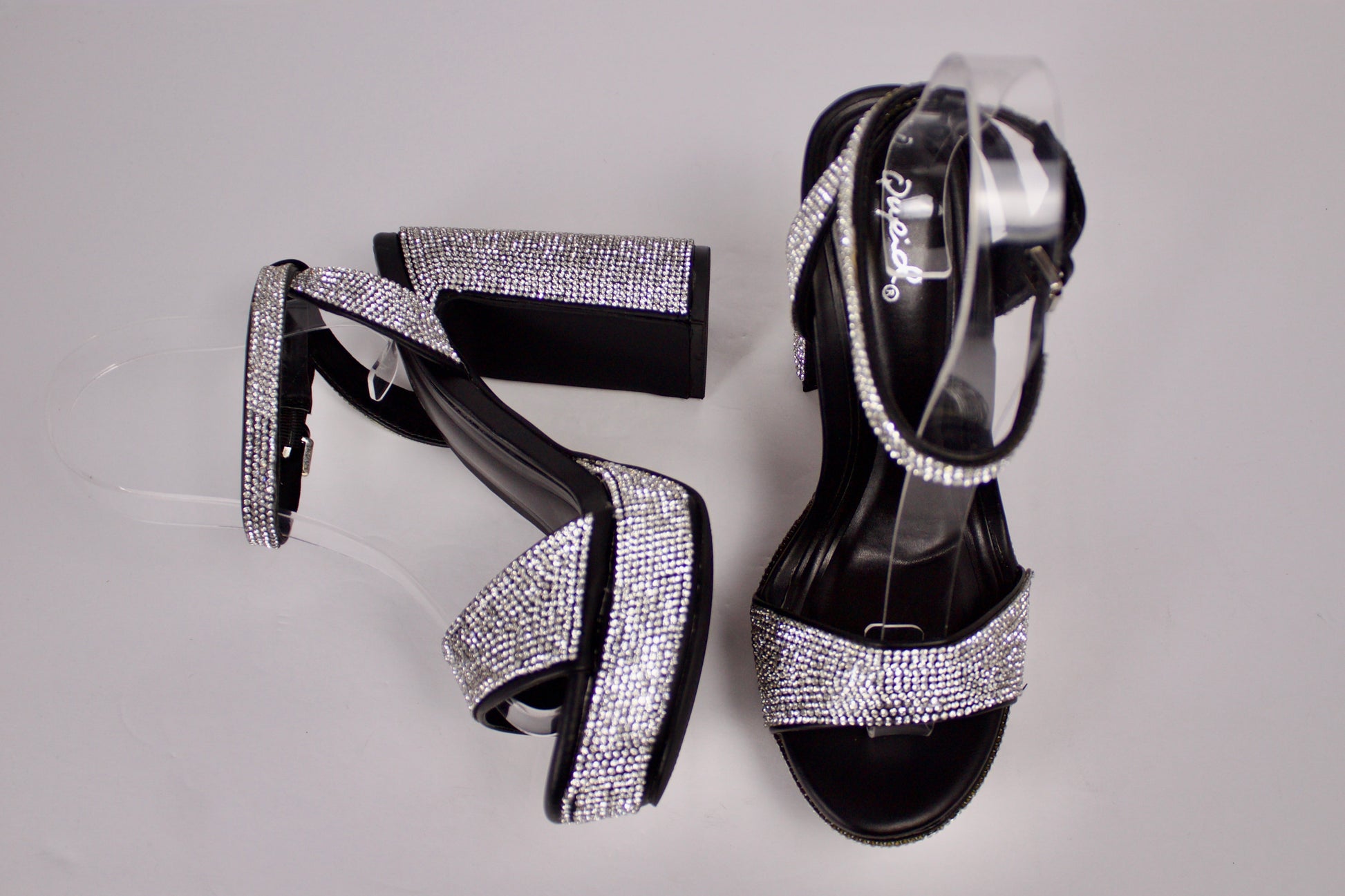 These glam heels have it all. With a chunky high heel and platform for added height, you'll stand tall and confident. The rhinestone details add a touch of sparkle while the ankle strap provides extra support. Make a statement with every step in these stunning heels.