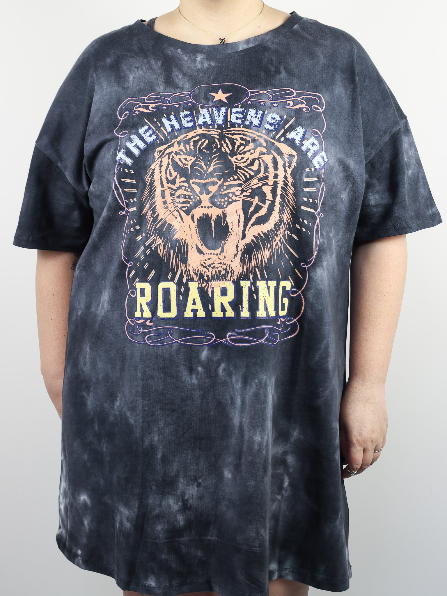 Experience effortless style with the Gray Wash T-shirt Dress, featuring a bold graphic print inspired by the roaring heavens. Crafted for comfort, this versatile dress is perfect for dressing up or down, adapting seamlessly to any occasion. Available in sizes small to 2X, it offers a flattering fit for a range of body types, making it a smart addition to your wardrobe.