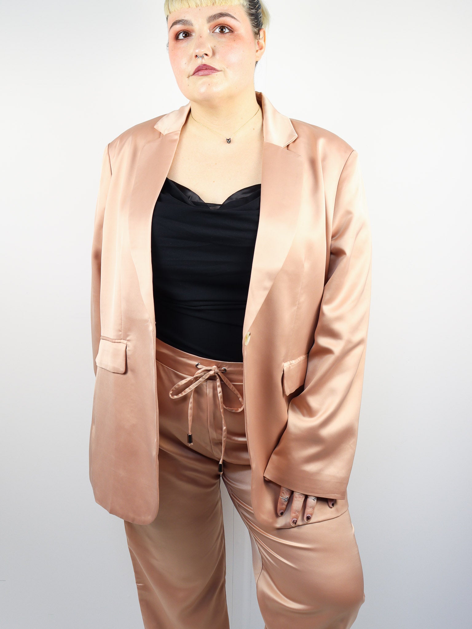 Plus Blush Satin Blazer