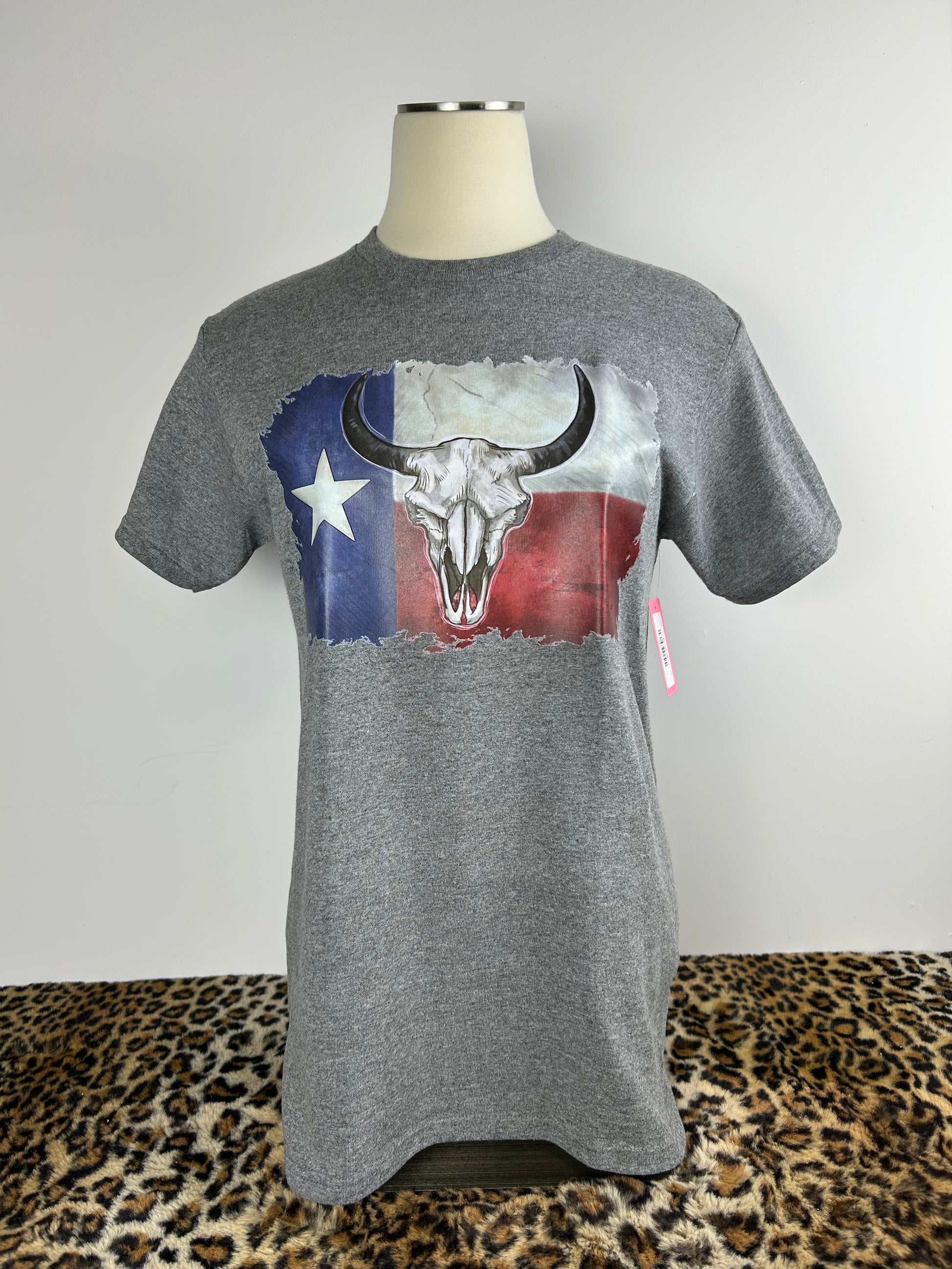 Celebrate Texas pride with this versatile unisex grey t-shirt, featuring a striking longhorn silhouette positioned above the iconic Texas flag. Crafted for comfort and durability, this piece works equally well for casual everyday wear or as a statement piece for enthusiasts of Lone Star culture. The classic grey base pairs effortlessly with any wardrobe, while the bold graphic design ensures your Texas spirit stands out. Perfect for locals and visitors alike who want to showcase their connection to the Texan heritage.